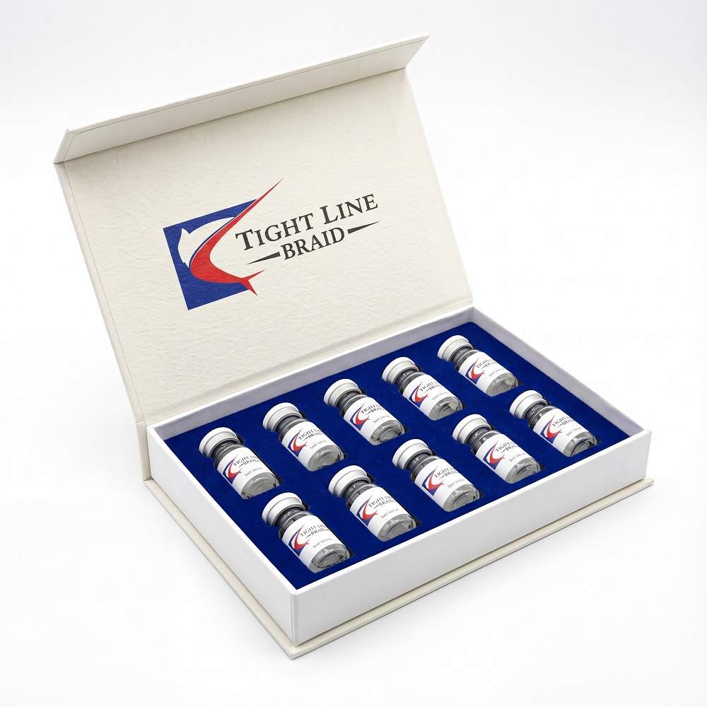 Peptide vials demand packaging that safeguards against light, moisture, impact, and vibration during storage, shipping, and handling. Our flip-top design meets these requirements while creating a premium first impression. Suitable for 1 to 10 vials (or more upon request), the box is fully customizable in dimensions, insert layout, color scheme, and surface finish — making it versatile for clinical, research, or retail peptide packaging needs.
